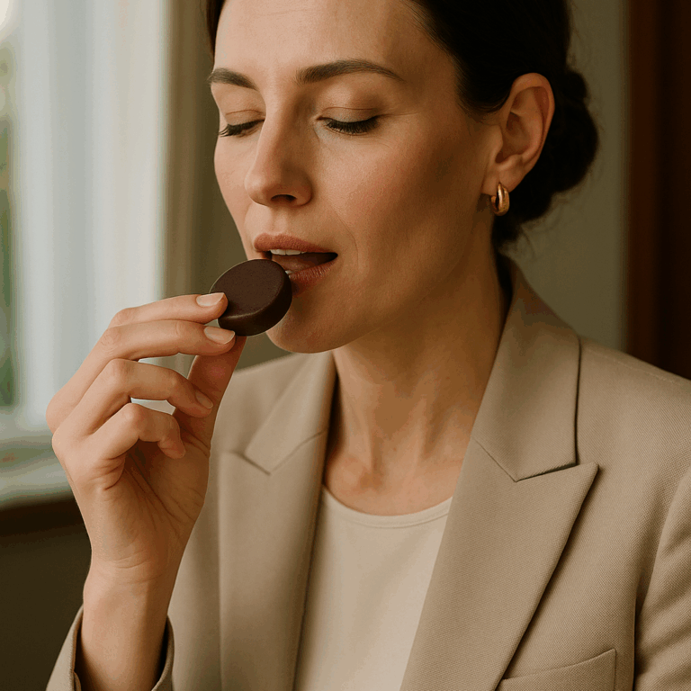 “Mon petit rituel du soir, à la fois gourmand et efficace. J’adore le concept de chocolat santé !”
